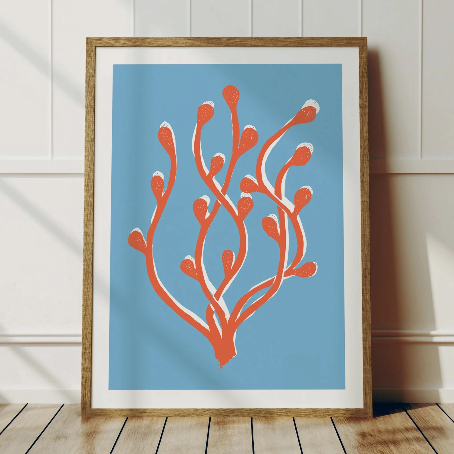 Bring a coastal-inspired feel to your home with this colourful seaweed art print. It was carefully crafted using traditional linocut techniques in our UK studio to create a bold and minimal print.