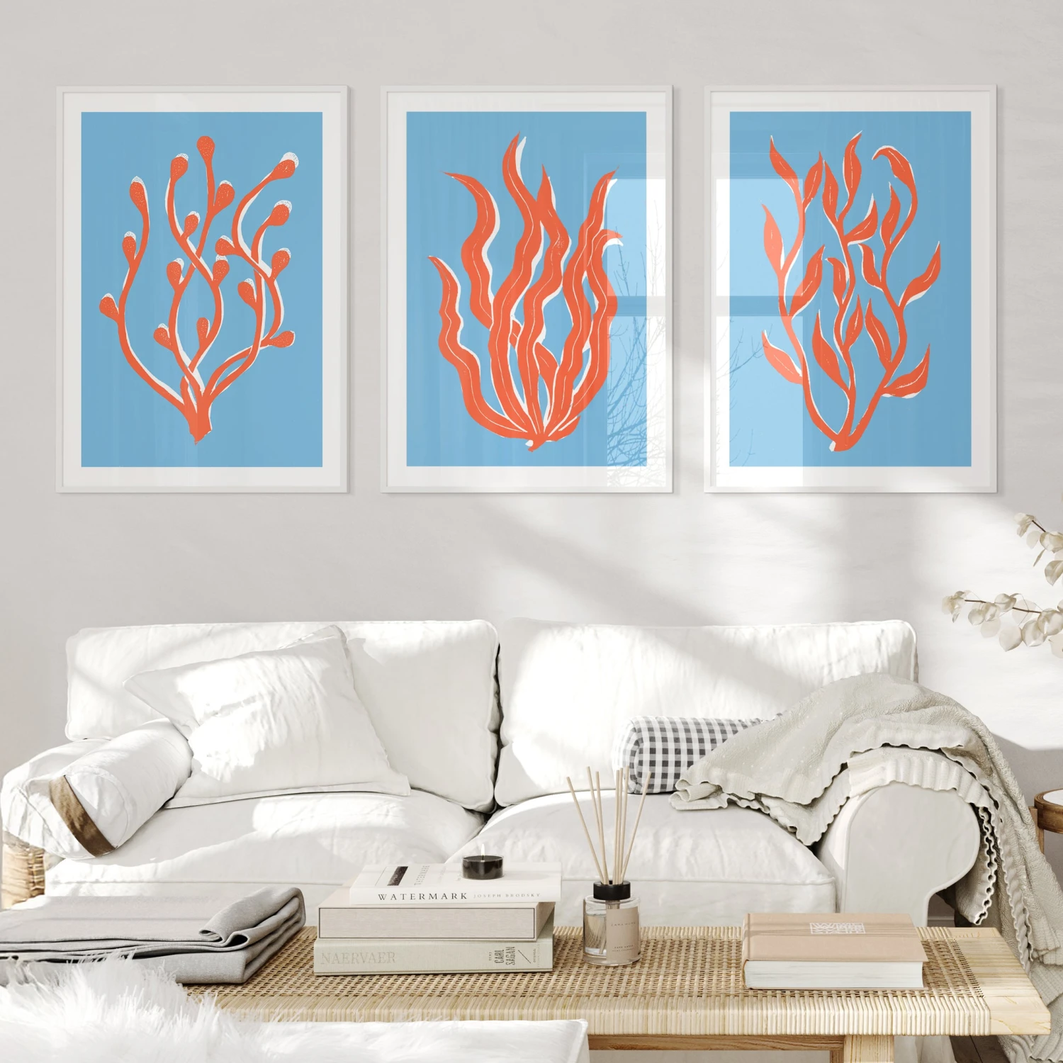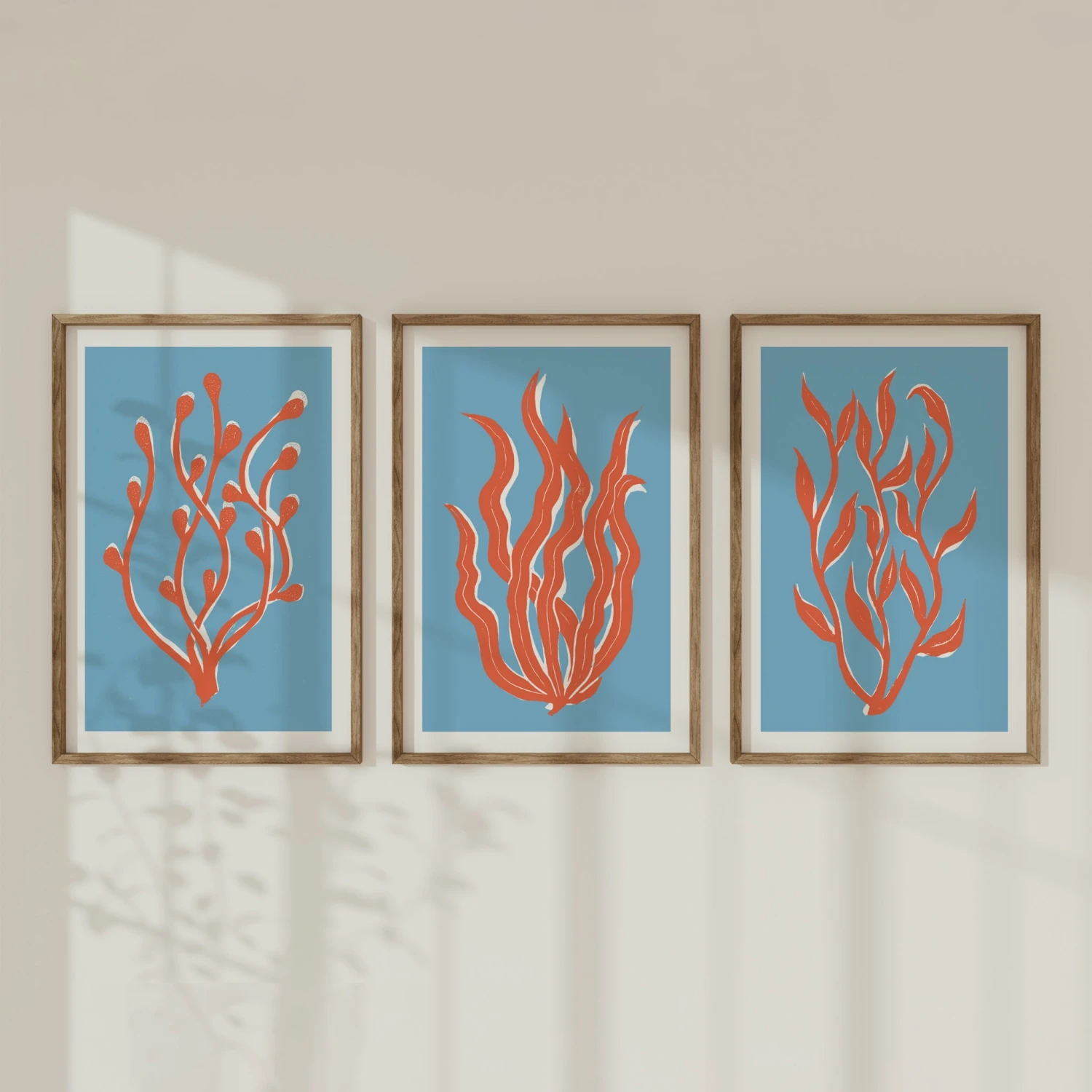 The flowing seaweed motifs are striking, adding a colourful, ocean-inspired touch to your decor. The stunning blue background with the bold orange graphic seaweed, will ensure this print fits perfectly into both modern and classic interiors.