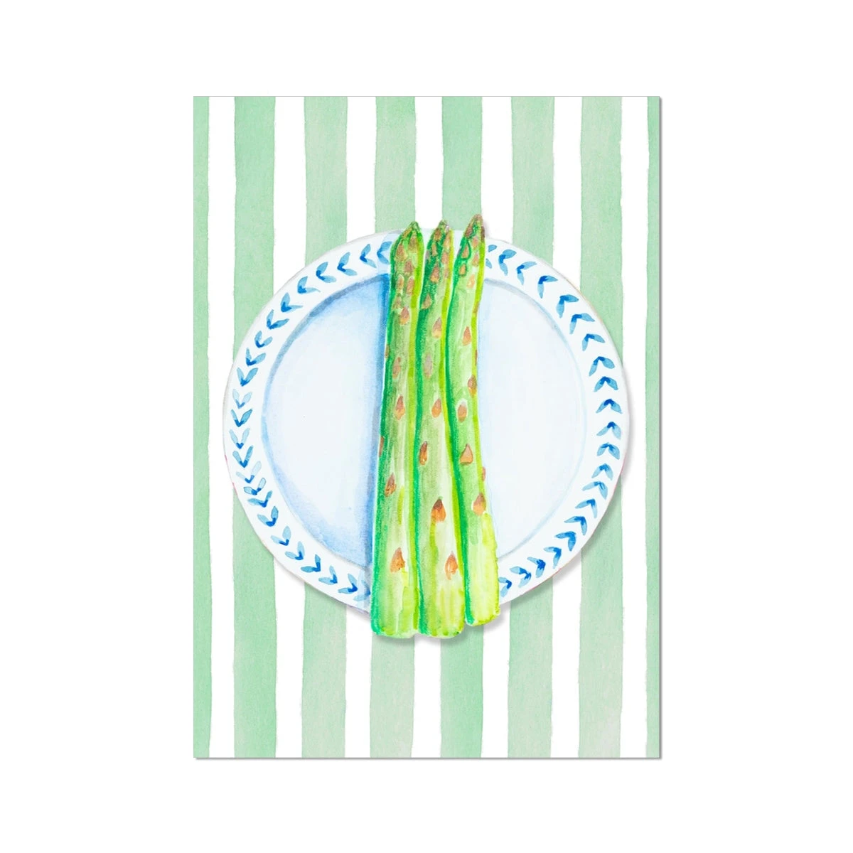 Bring a splash of colour and culinary charm to your kitchen with our Asparagus print. Featuring beautifully hand-painted asparagus on a vibrant green stripe background, this kitchen wall art print is part of our exclusive collection, perfect for adding personality to your kitchen decor.