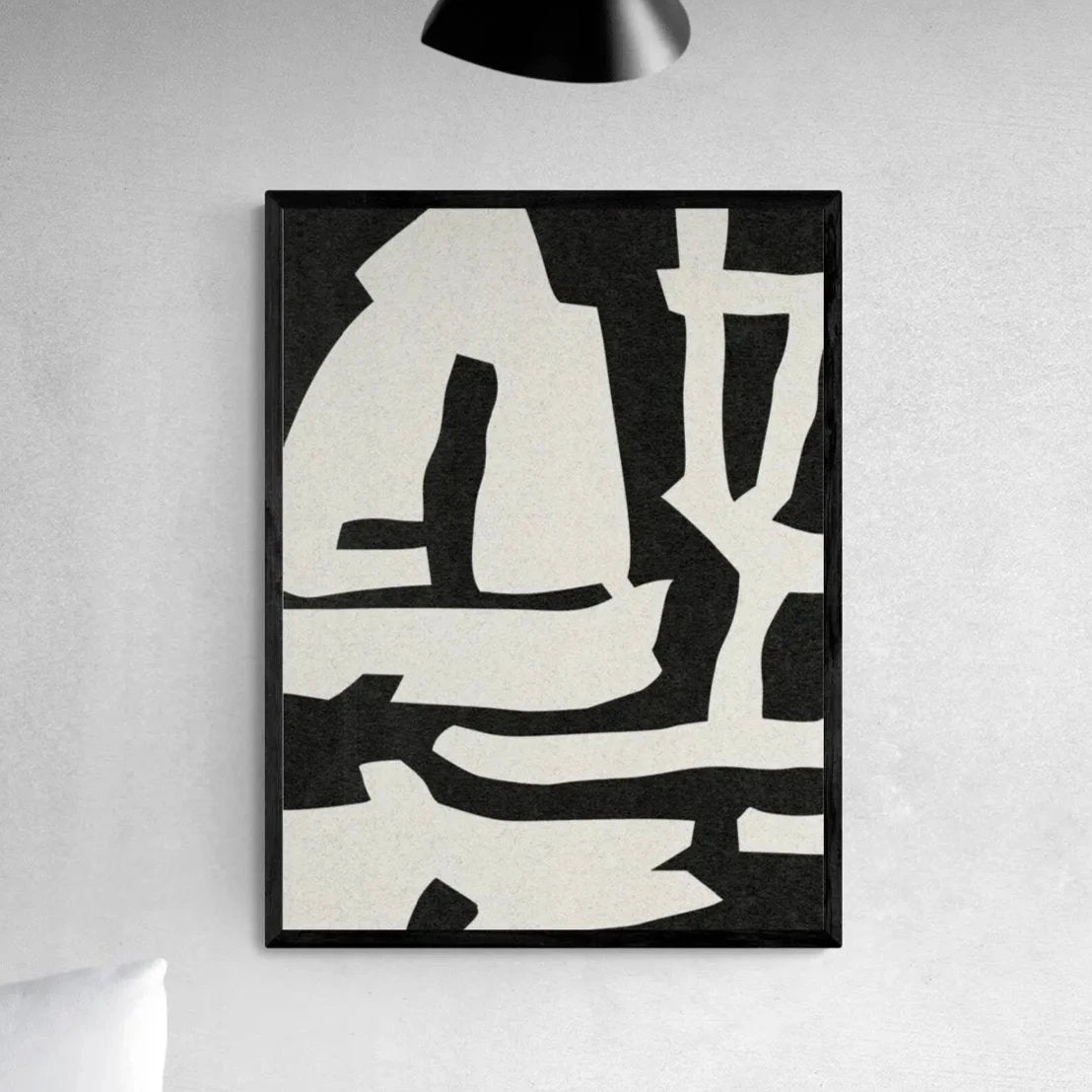 The striking Black Abstract Coast series was inspired by a traditional coastal scene and then broken down repeatedly until we arrived at this raw, abstract depiction. We love this abstract black and off-white print in a black frame and printed as big as possible. It is dramatic on its own, or paired with its twin, Black Abstract Coast No. 2. The confident monochrome design allows it to sit comfortably in any interior.