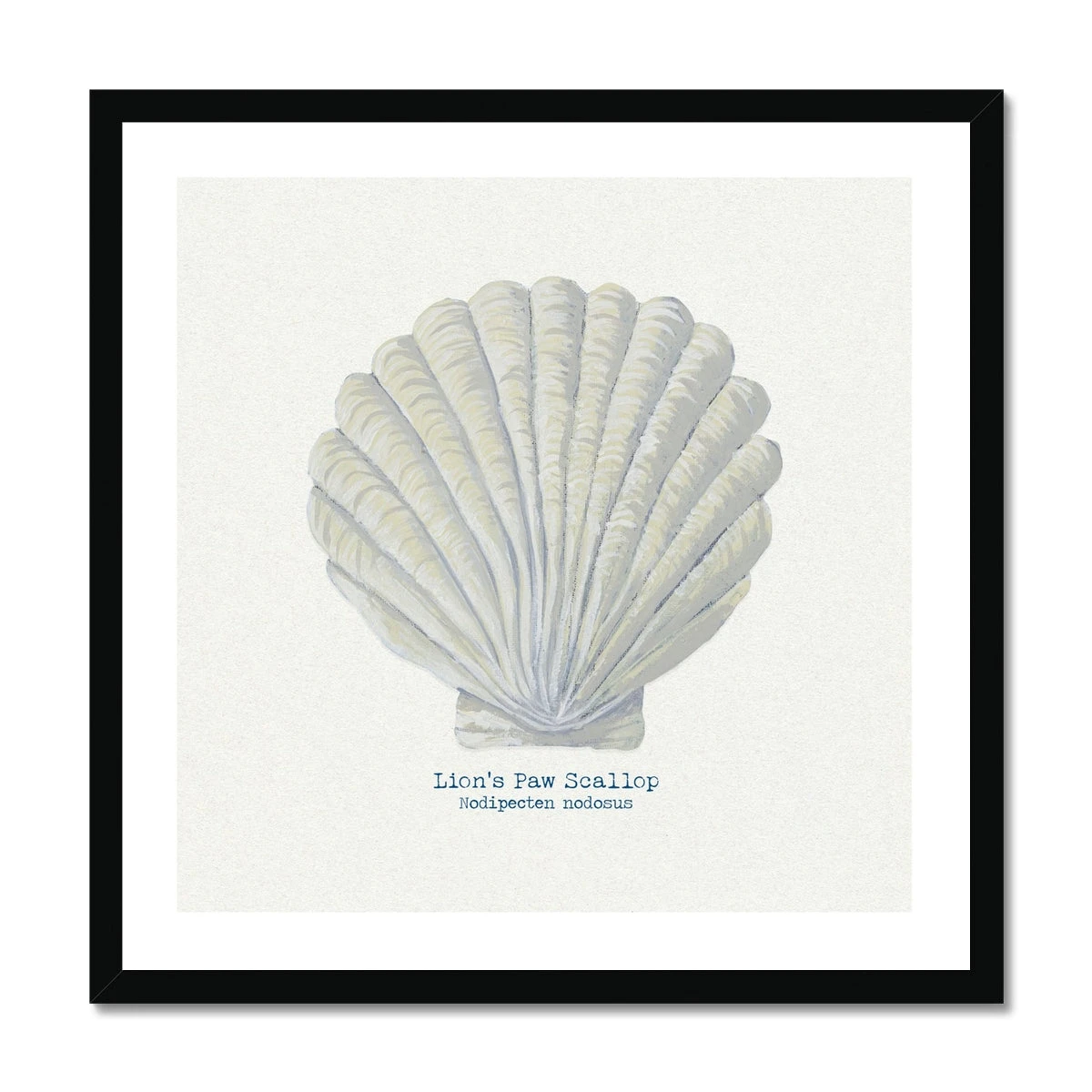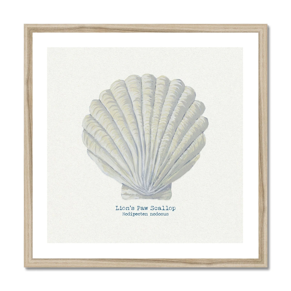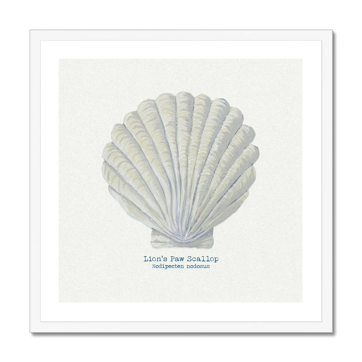 Discover the intricate beauty of the Fan Scallop, captured in exquisite detail in this stunning shell art print. Based on an original hand-painting, this print showcases the unique form and texture of this classic seashell against a sophisticated natural, textured background.