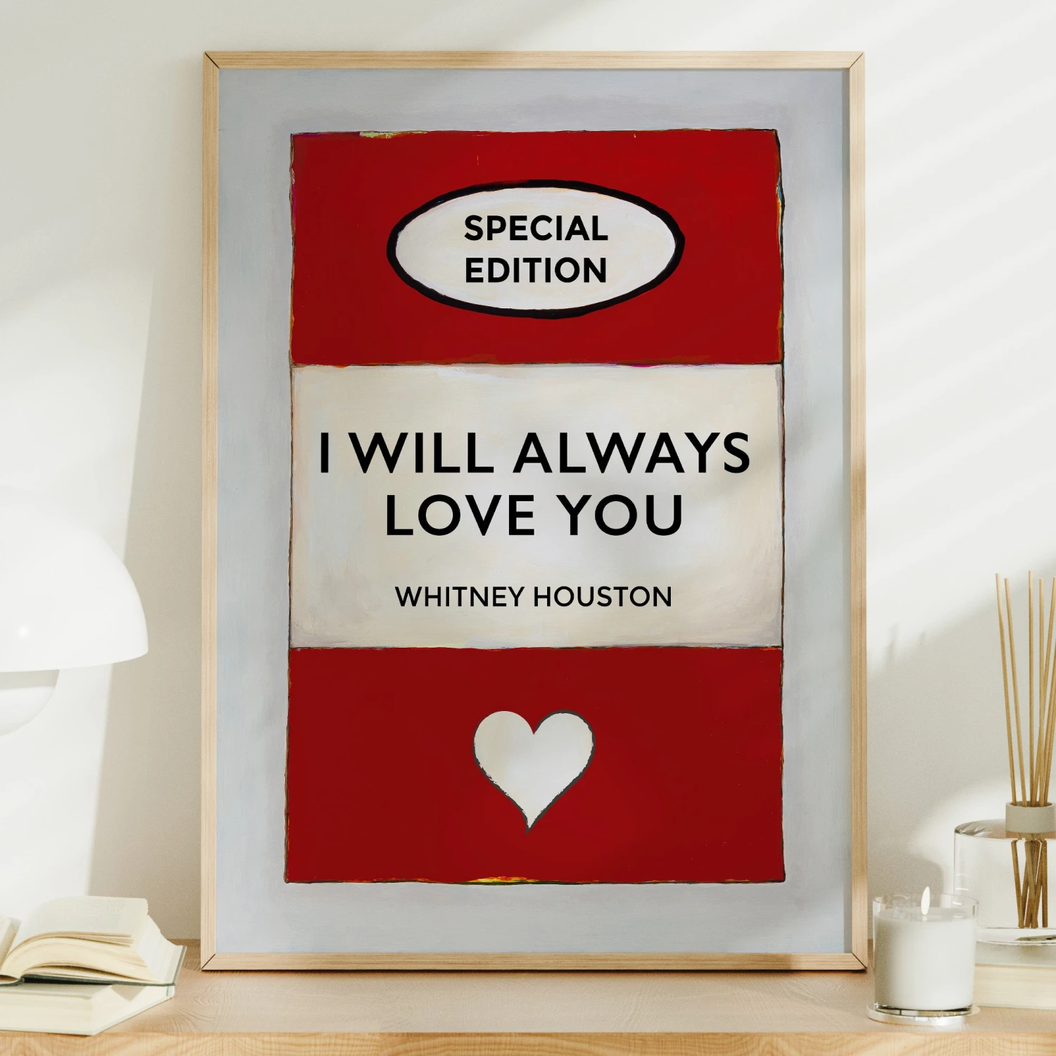 Word Art Lyric Poster: I Will Always Love You, originally sung by Whitney Houston.