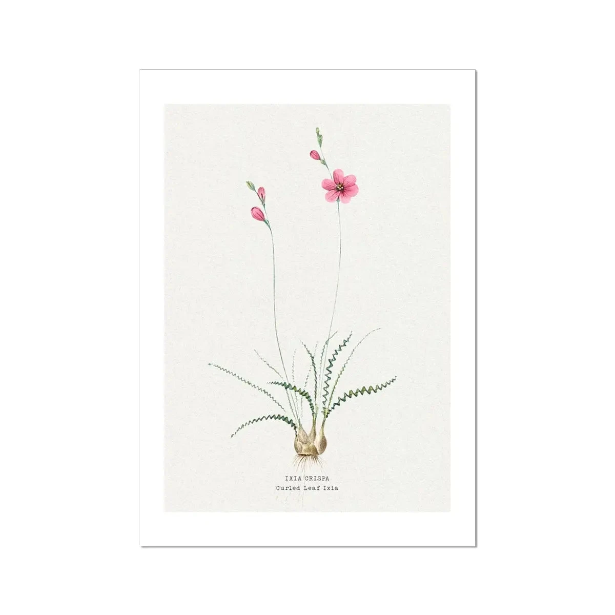 This finely detailed painting features a breathtaking curled leaf ixia in all its glory, expertly restored and transformed into a high-quality giclee print on heavy, premium art paper (200gsm) with a smooth matte finish. With its delicate pink flower hues and intricate leaf detail, this ixia painting will add a touch of elegance and sophistication to any room in your home.