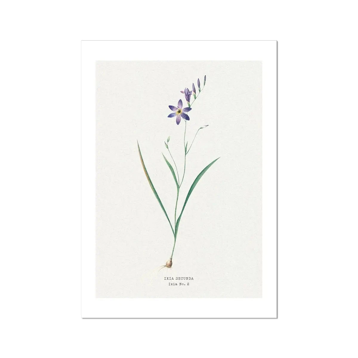 This finely detailed painting features a breathtaking ixia secunda in all its glory, expertly restored and transformed into a high-quality giclee print on heavy, premium art paper (200gsm) with a smooth matte finish. With its delicate purple flower hues and flower detail, this ixia painting will add a touch of elegance and sophistication to any room in your home.