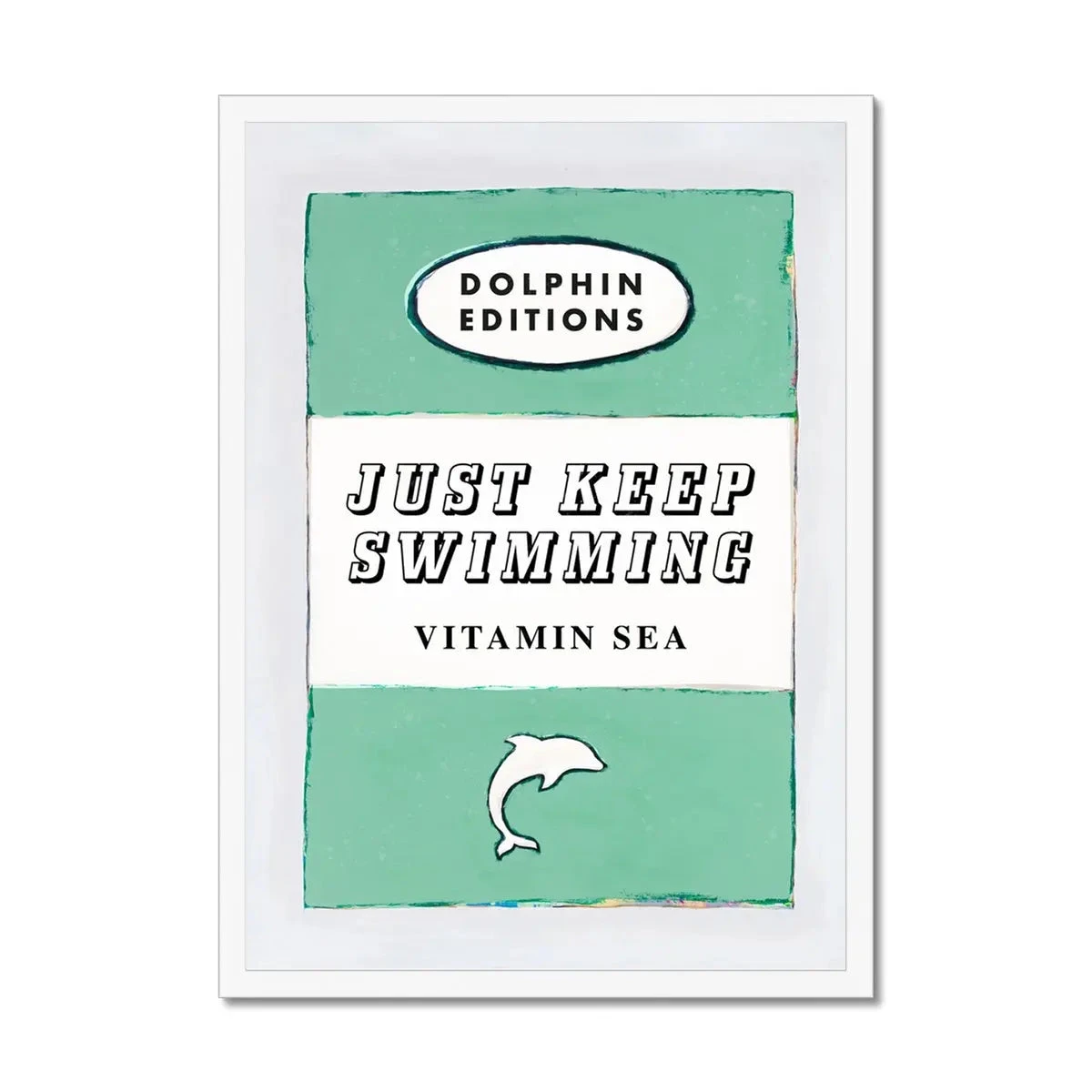 Introducing the Dolphin Editions collection of vintage book posters the perfect addition to any book lover’s home or office. Just Keep Swimming in a beautiful jade-green.