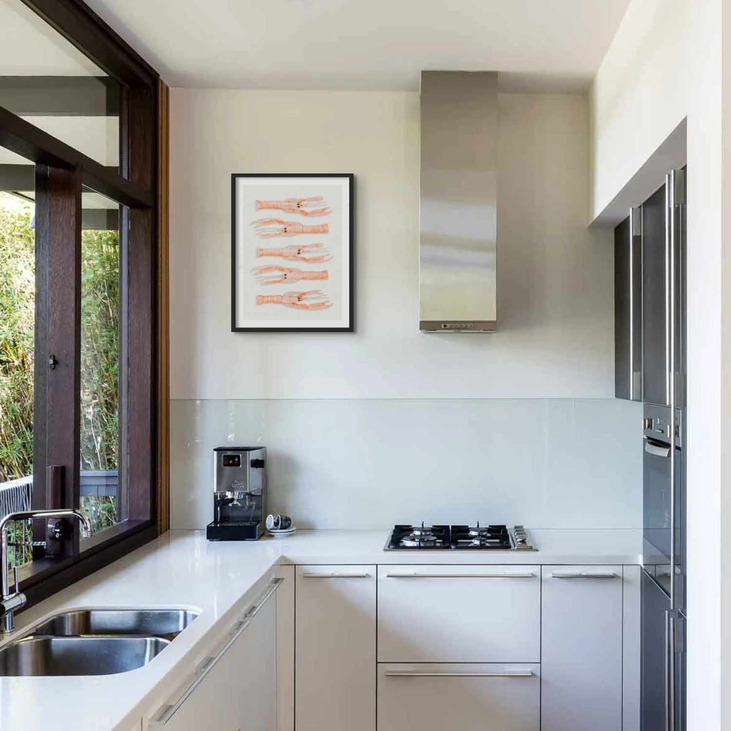 These kitchen prints are ideal to hang by themselves for a bold statement, or with other shellfish art, such as our Lobster watercolour painting from our stunning kitchen wall art series.