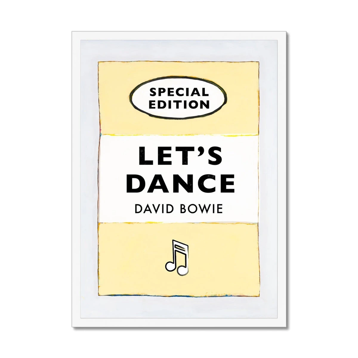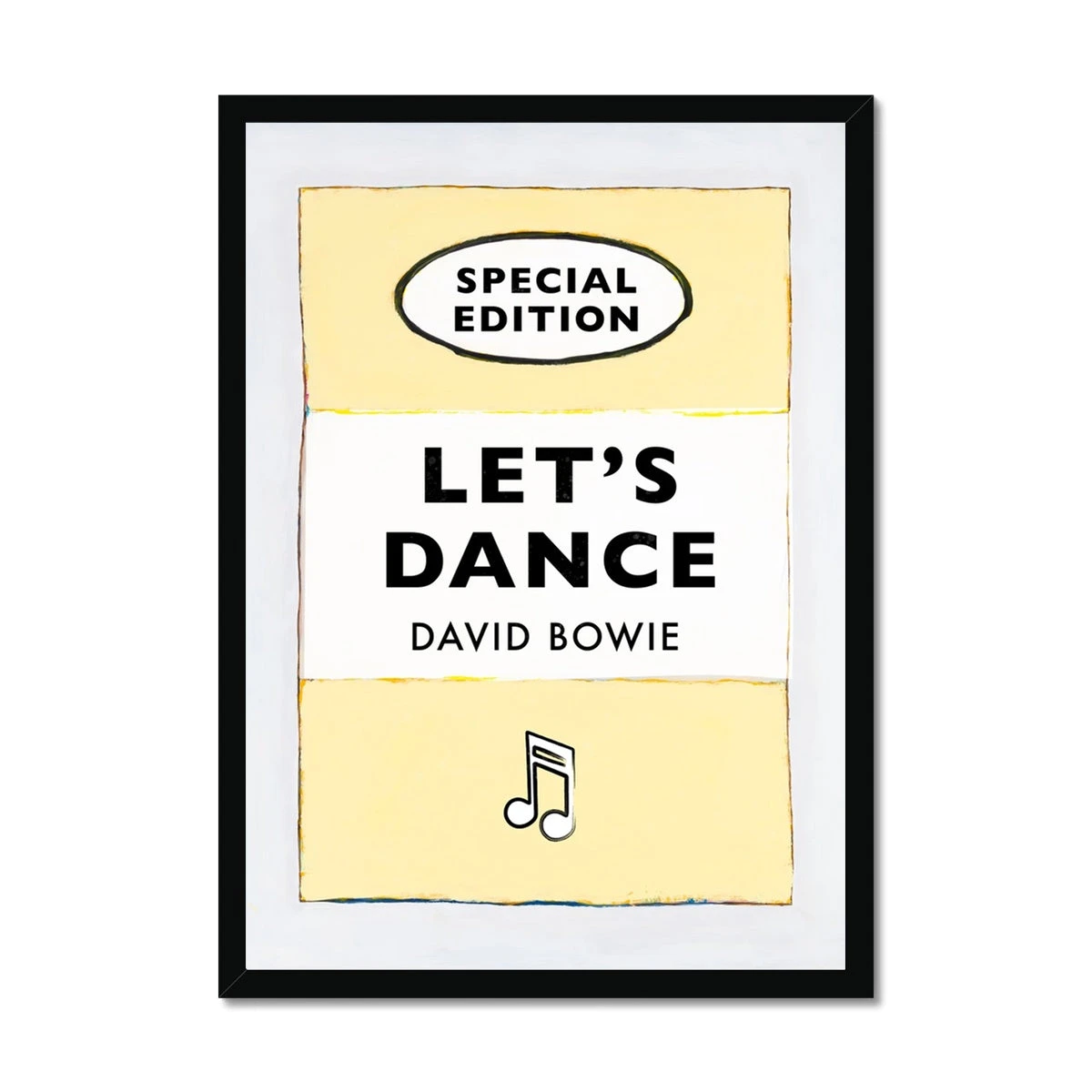 This Let’s Dance (Yellow) Lyric Book Cover Print Framed Print is the perfect way to bring some disco energy to any room. Featuring a vintage book cover with ‚ÄòLet’s Dance’ by David Bowie as the title, you can instantly inject some 80s vibes into your living space. An eye-catching piece of wall art that will no doubt become the star of the show. Our Special Editions are an original Beach House Art collection of vintage book art. Great displayed on your wall as a single statement artwork and equally, as a part of a gallery wall.