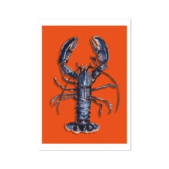 This stunning print of an original watercolour painting from our studio features a beautiful blue lobster against a vibrant orange background. The print is available in a variety of sizes and framing options, so you can find the perfect one to fit your space.