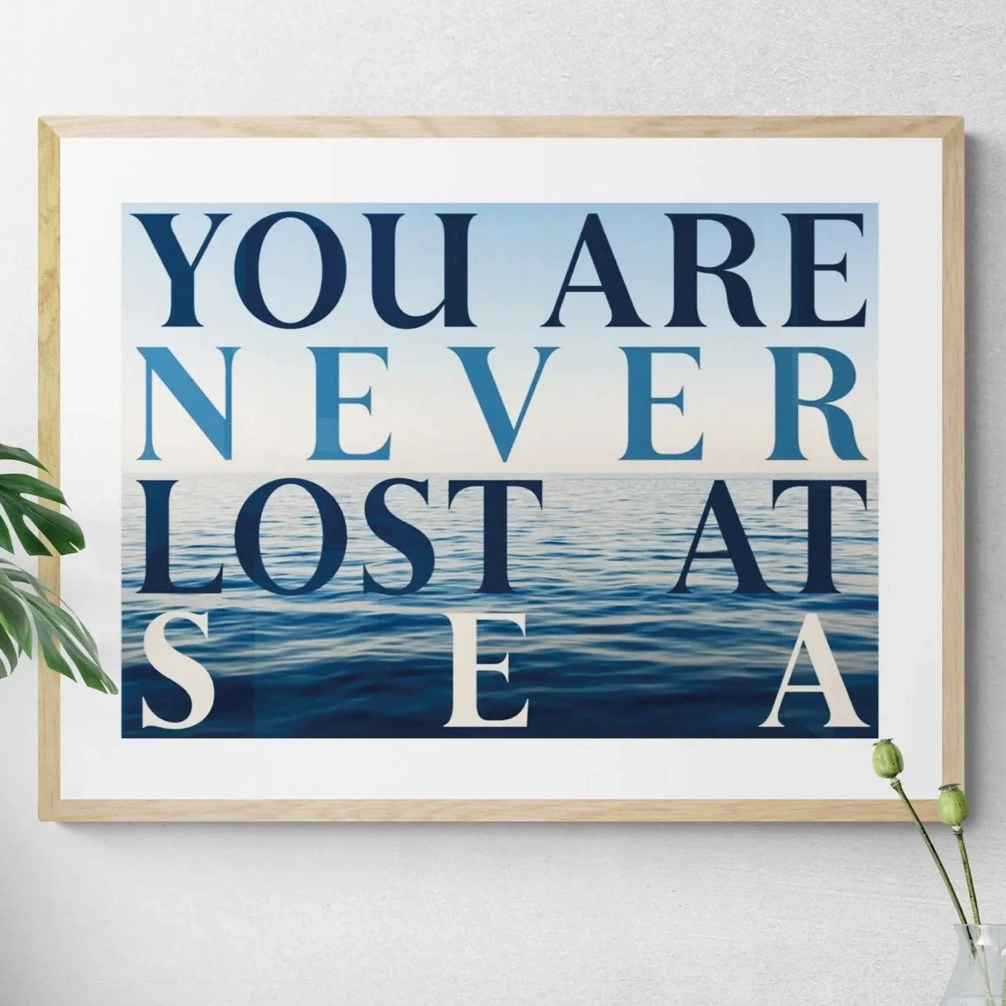 At Beach House Art we love typography – especially overlaying beautiful photographs. We always feel at home bobbing about in the sea. It washes away your troubles and elevates our moods … this photographic art print is a great reminder!