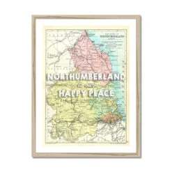 Be the first to review “Northumberland Is Our Happy Place Quote On Map Print Of Northumberland | Map Art – Framed” Cancel reply