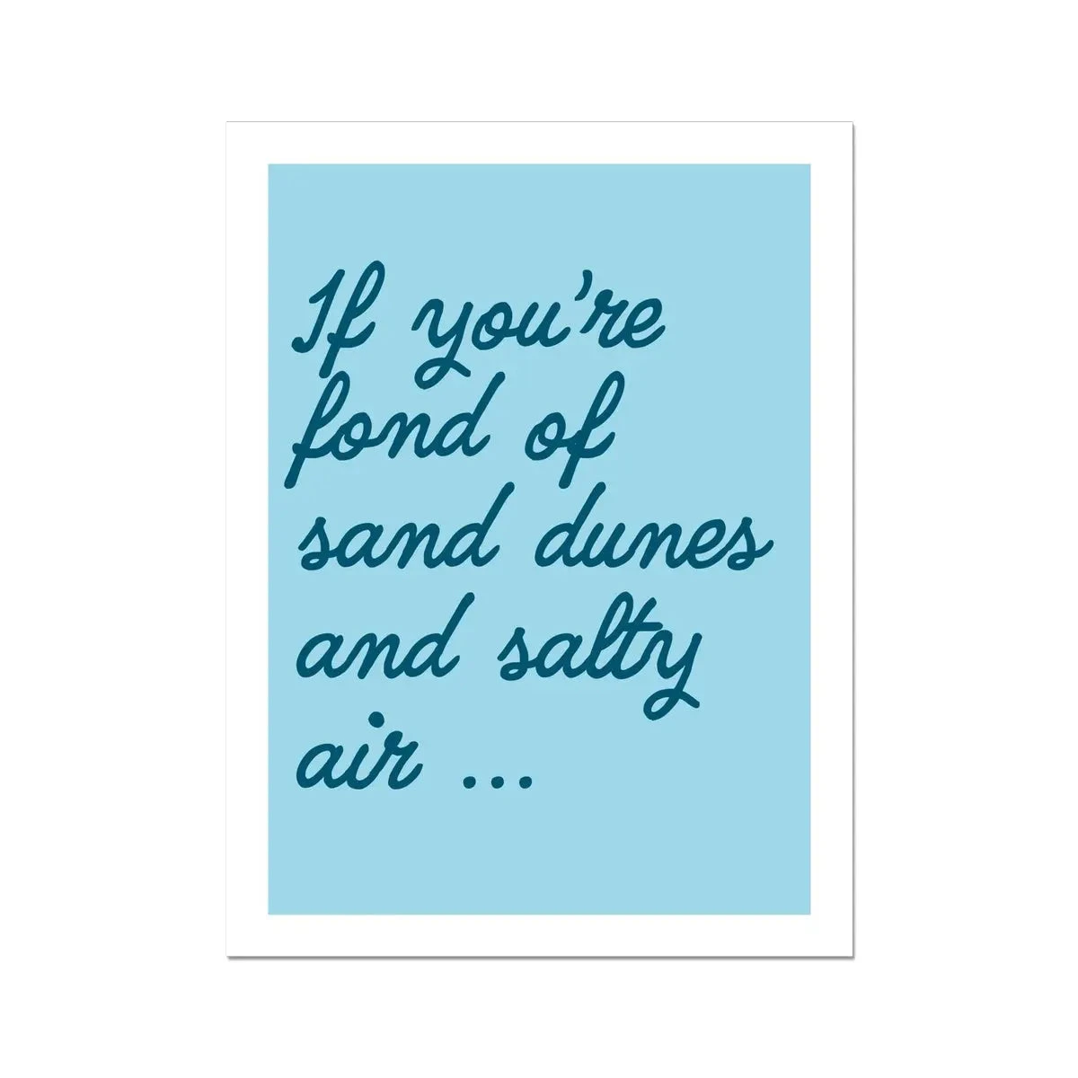 The trend for typographical word and lyric art is strong and on the rise in interior design circles. The colours in this print mix modern design with a retro feel. The marine blue text works brilliantly with the sky blue background, complementing any interior decor looking for a splash of sunshine.