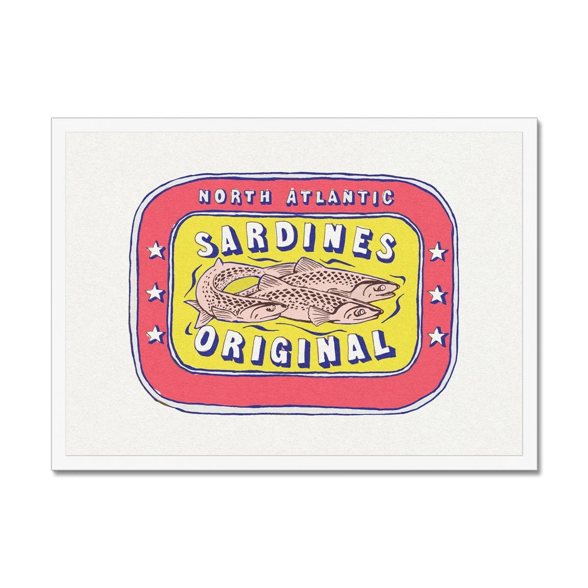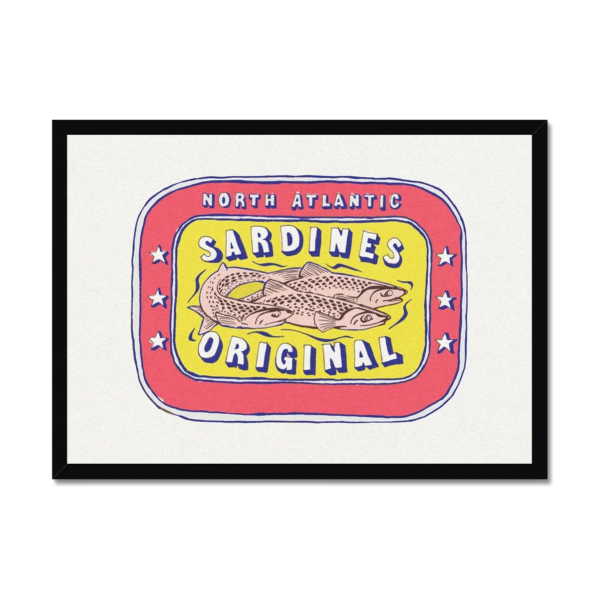 This stunning sardine tin painting wall print is the perfect addition to any kitchen, bringing a touch of seafood to life in your home. With bold red and yellow colours, this fine art print is sure to inspire and add a unique touch to your decor. Bring the beauty of the ocean to your kitchen with this must-have piece!