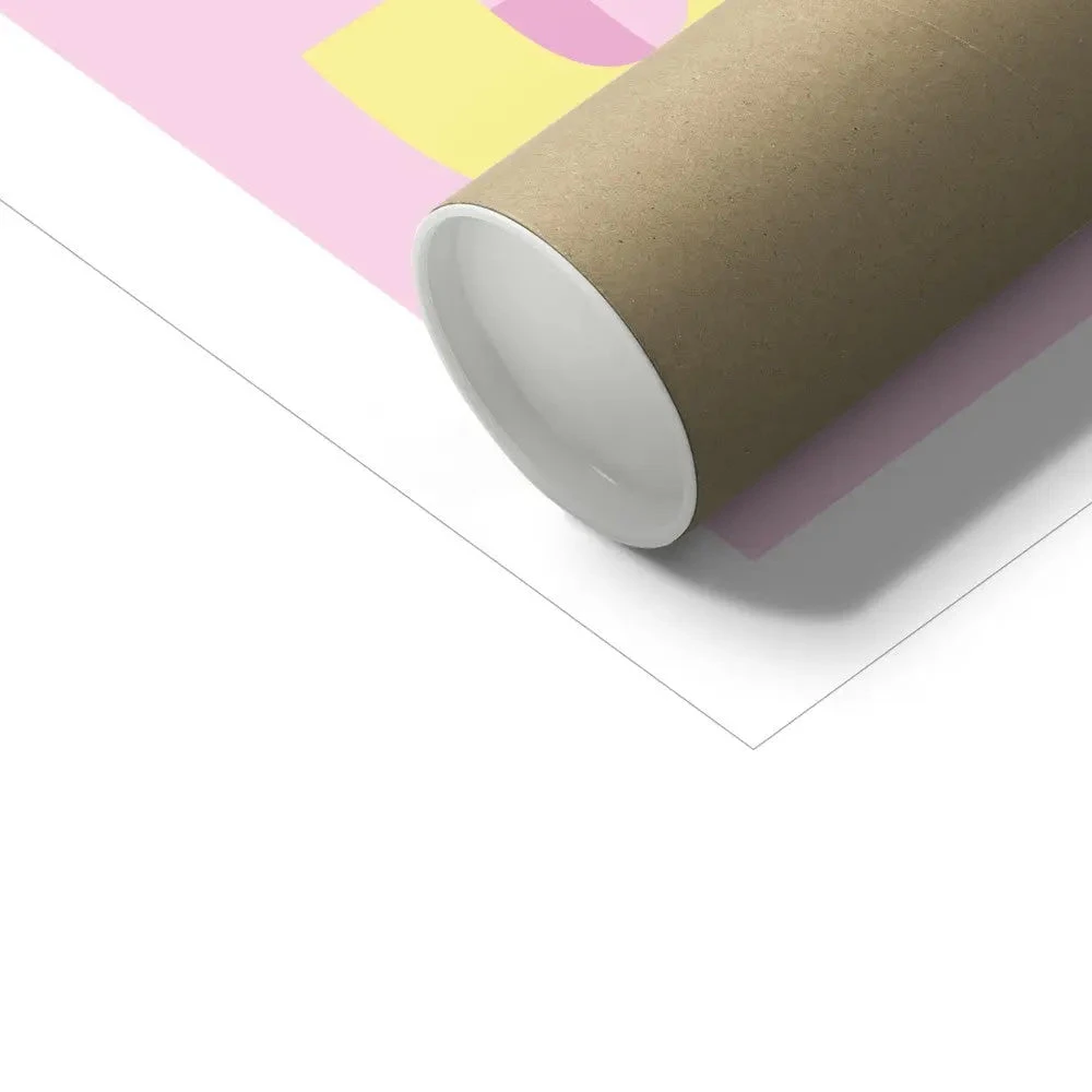 The trend for typographical words and lyric art is strong and on the rise in interior design circles. The colours in this print mix modern design with a retro feel. The lemon yellow text works brilliantly with the soft pink background, complementing any interior decor looking for a splash of sunshine.