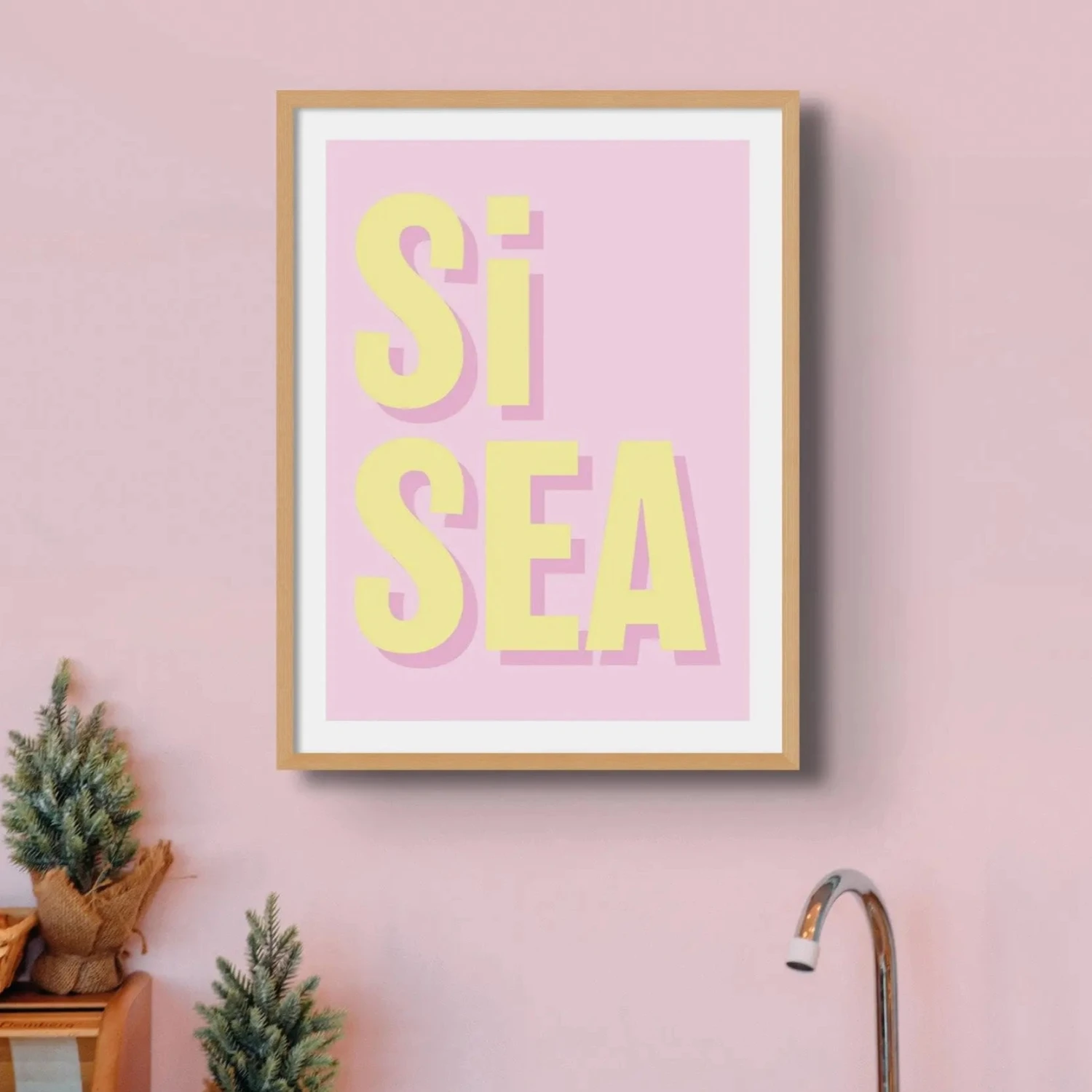 Colourful typography wall art with quotes to enliven your wall. Si Sea (Pink)