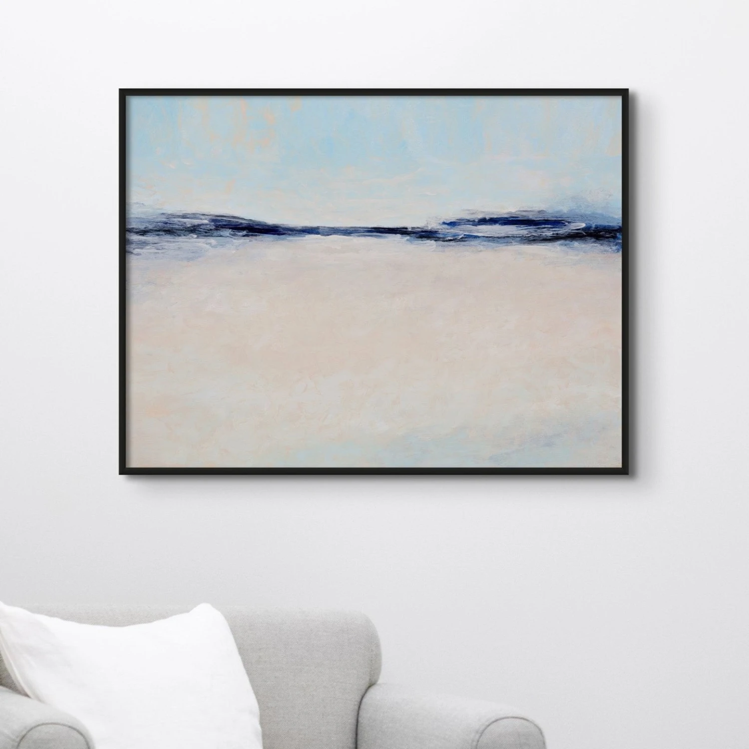 The abstract style of this piece introduces a laid-back, beachy mood and a sophisticated edge to your room. Think of it as adding a dash of an ocean breeze, the chill of a beach holiday, or the calming whispers of the sea right in your living room, bedroom, or wherever you hang it.