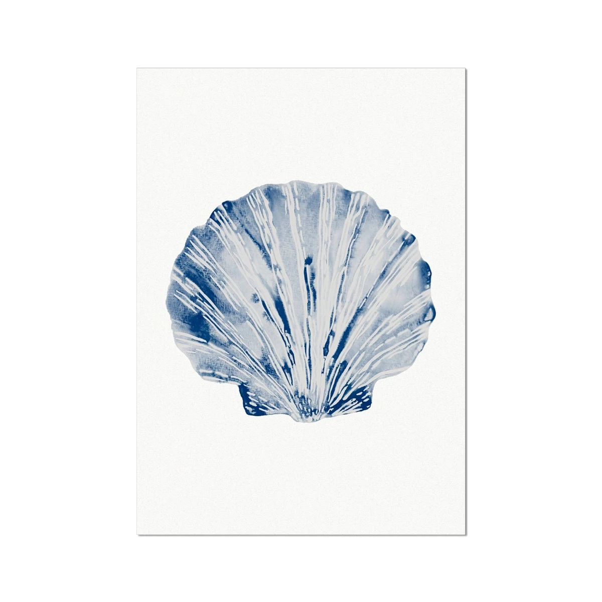 Navy blue art of a Scallop Shell – a beautiful print of an original watercolour painting.